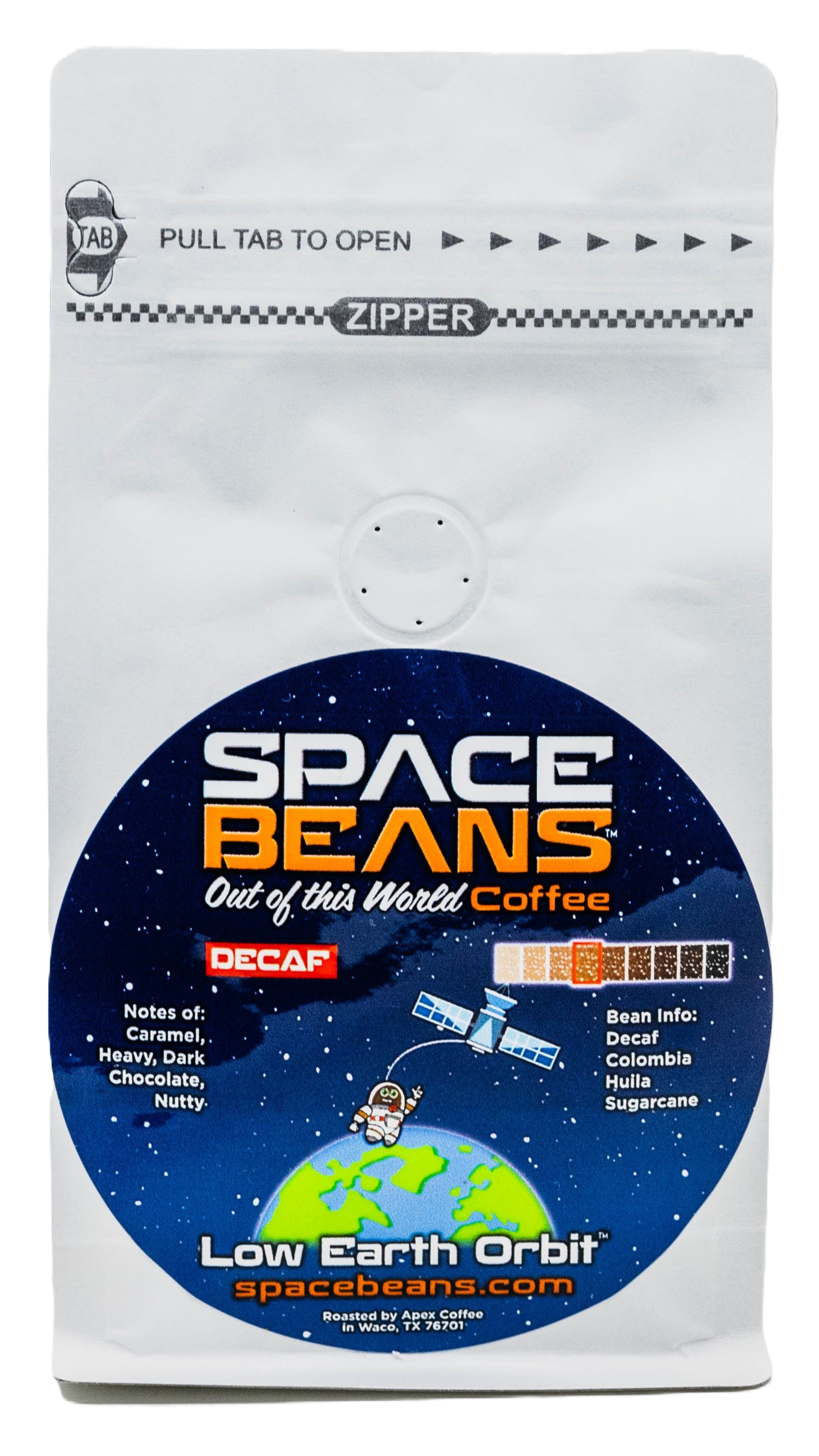 Meet Low Earth Orbit, the tranquil decaf medium roast coffee blend. As grounded and serene as a satellite calmly circling the Earth, he brings a soothing calmness and eases you into your day. He introduces himself through the silky smooth notes of caramel, his sweetness as comforting as watching the world pass by from a window in the sky. His spirit is encased in the exquisite richness of dark chocolate and nutty complexity, reminding us of the earthly essence at the core of this celestial blend. Low Earth Orbit is a calming, reassuring companion, infusing your coffee experience with a soothing sense of tranquility and a hint of the extraordinary. So, embark on a serene journey with Low Earth Orbit and let him gently guide you on a tranquil journey around our home planet.